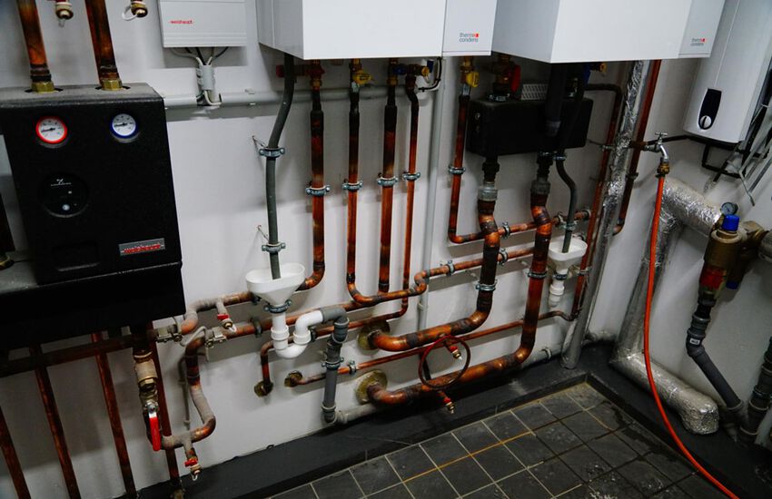 - Einbau von zwei Gasbrennwertgeräten für die Wohnungen, Leistung: 24 kW, Fabrikat: Weishaupt