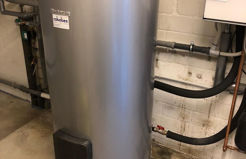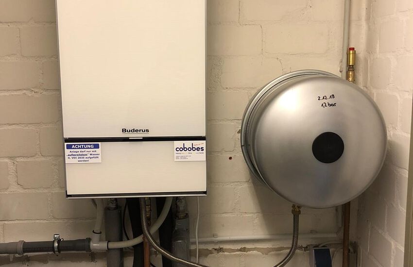 Einbau eines Gasbrennwertgerätes mit nebengestelltem Warmwasserbereiter, Fabrikat: Buderus